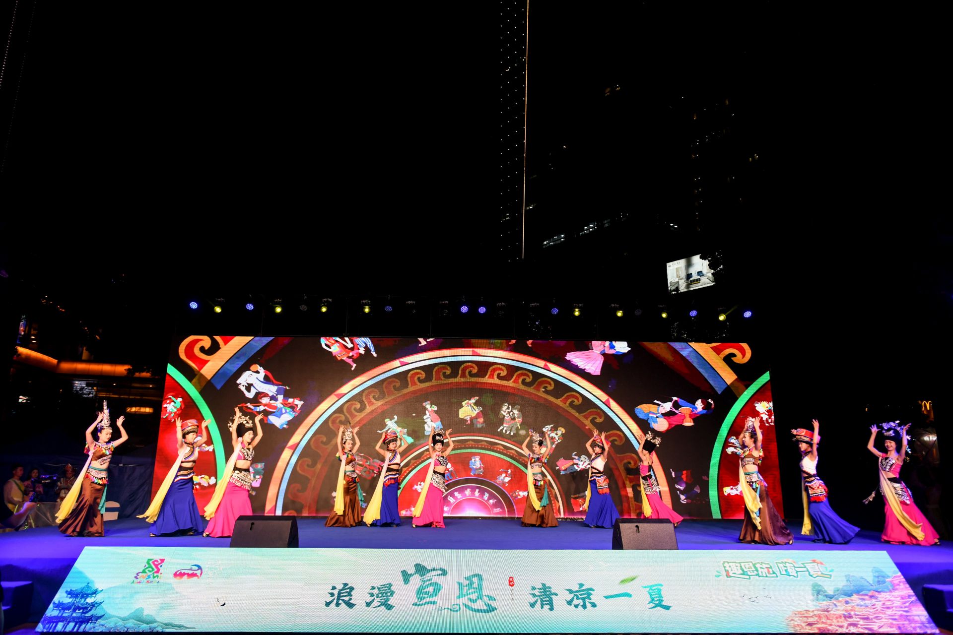 連日晴熱,武漢的夏夜,仍暑氣逼人,但當(dāng)晚的西北湖廣場,現(xiàn)場觀眾的熱情絲毫不減。推介會(huì)現(xiàn)場,推介官結(jié)合音樂、舞蹈、表演等多種藝術(shù)形式,用情景劇的方式沉浸式推介,將宣恩的玩樂攻略、民族文化、節(jié)慶賽事等文旅資源,生動(dòng)直觀地呈現(xiàn)在觀眾面前,帶給觀眾身臨其境之感。《宣恩耍?!贰蹲笥疫B廂舞豐年》《我是土家人》等多個(gè)少數(shù)民族特色的歌舞節(jié)目輪番上演,獨(dú)特的民族風(fēng)情讓觀眾提前感受到了宣恩的浪漫與熱情。