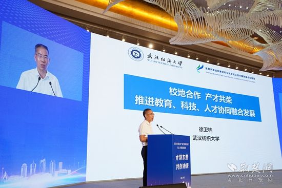 活動現(xiàn)場,中國工程院院士、武漢紡織大學黨委副書記、校長徐衛(wèi)林以《校地合作產才共榮,推進教育、科技、人才協(xié)同融合發(fā)展》為題發(fā)表主旨演講。他表示,科技成果難轉化,是因高校老師們一線來少了,專利是在實驗室想出來的。今天黃石搭建了平臺,讓老師走進企業(yè),出去就有了目標,專利有了意義,創(chuàng)新也有了針對性。