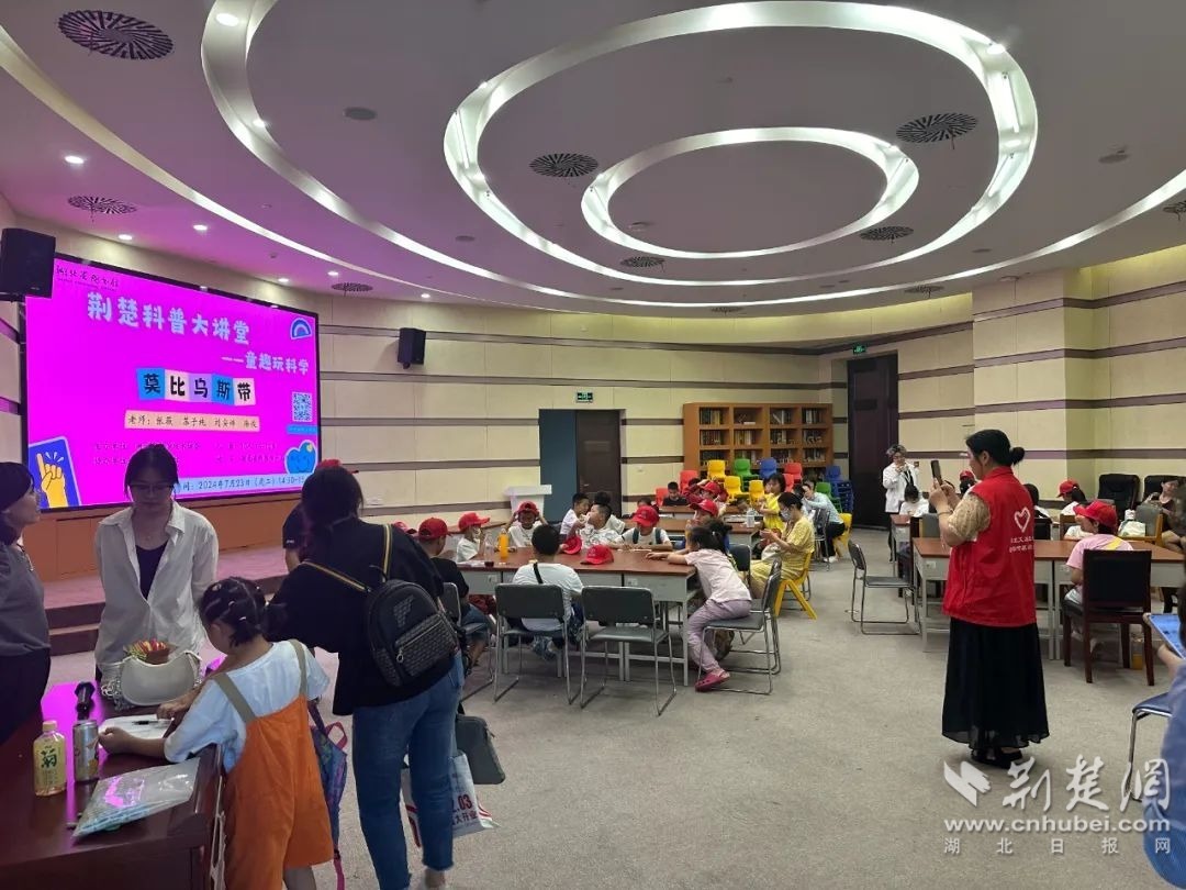 隨后,在江老師的帶領(lǐng)下,孩子們來到“荊楚科普大講堂”參加少兒科普活動(dòng),面對(duì)從未在書本里接觸過的知識(shí),孩子們展現(xiàn)出了強(qiáng)烈的好奇心和求知欲,爭(zhēng)先恐后地舉手回答問題,現(xiàn)場(chǎng)氣氛相當(dāng)活躍。