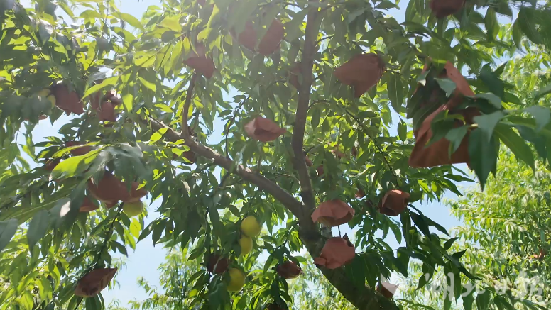 在果園里,沉甸甸的黃桃掛滿枝頭,圓潤飽滿的果實壓彎了枝條,微風(fēng)吹過,陣陣桃香撲面而來。大新鎮(zhèn)種植、培育桃苗的歷史悠久,孕育出許多優(yōu)異的桃樹品種,這里擁有獨特的沙土地和充足的光照條件,堅持人工綠色種植理念,種出來的果子有機質(zhì)含量高,口感好。
