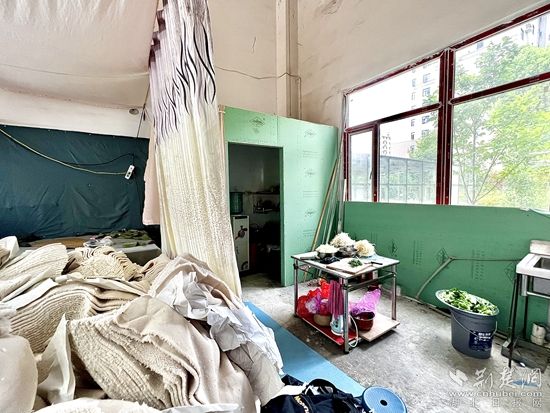 不僅如此,在大約50平方米的空間里,混亂擺放著十幾臺服裝加工機(jī)器,加工設(shè)備旁還放置著燃?xì)庠睢N具等一應(yīng)俱全的做飯工具,且未進(jìn)行有效防火分隔。用來“保命”的室內(nèi)消防栓,也被用作置物臺放置各種雜物。