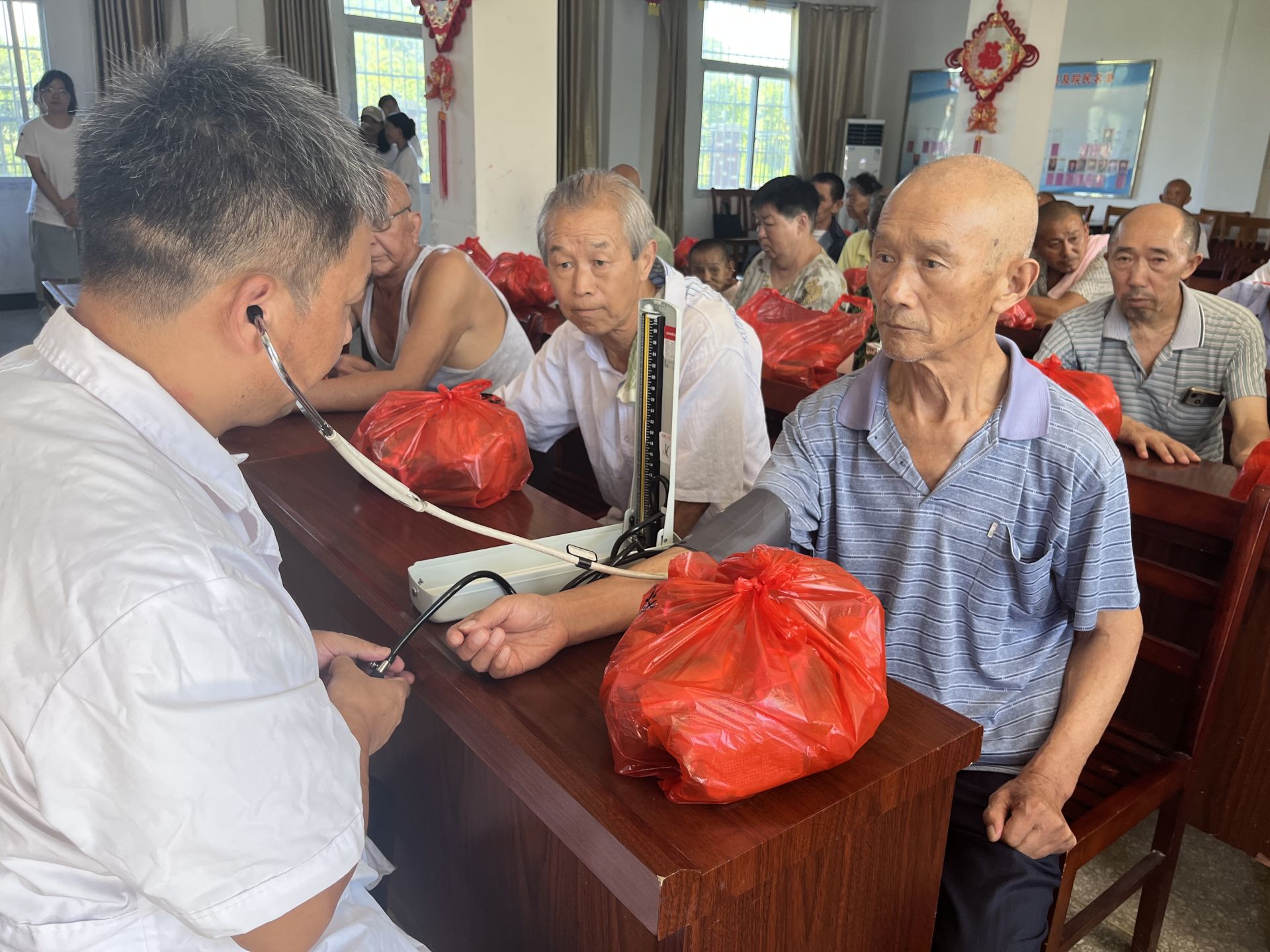 福利院內(nèi),大別山支教團志愿者們細心的幫助老人整理房間、打掃衛(wèi)生、清洗衣物,陪老人談心聊天,科普急救和防電信詐騙知識,大悟縣“救在身邊”志愿服務(wù)隊志愿者為老年人免費體檢,進行耳鼻喉、視力、血壓、血糖等項目檢查,并根據(jù)每位老人不同的身體狀況給出合理化的建議和健康指導(dǎo)。