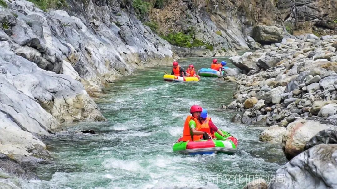 麂子渡景區(qū):位于恩施市白楊坪鎮(zhèn),距離城區(qū)約50公里。夏日炎炎在這里何來(lái)一場(chǎng)刺激又清涼的漂流之旅,體驗(yàn)水上的速度與激情!乘坐漂流皮筏,沿著蜿蜒曲折的河道,穿梭于青山綠水之間,感受盛夏漂流的無(wú)限魅力。這里有專(zhuān)業(yè)的救生設(shè)備和教練團(tuán)隊(duì),確保您的漂流之旅安全無(wú)憂(yōu)。