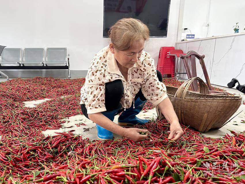 北河村黨支部書記顏業(yè)青笑著說(shuō):“辣椒種植期間有培訓(xùn),收購(gòu)還有保底價(jià),農(nóng)戶種著很放心,今年我種了40余畝辣椒,僅一天半時(shí)間共采摘1700余斤。自辣椒開始收購(gòu)以來(lái),村民都在忙著采摘辣椒,現(xiàn)在車上載了3000多斤辣椒正等著卸貨呢?!?/p>