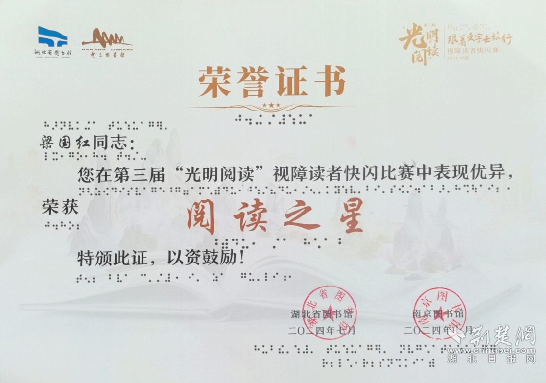第三屆”光明閱讀"視障讀者快閃賽由中國盲文圖書館、湖北省殘疾人聯(lián)合會(huì)等相關(guān)單位共同指導(dǎo),以“跟著文字去旅行”為主題,為殘疾人提供均等的公共文化服務(wù)和個(gè)性化文化服務(wù),進(jìn)一步促進(jìn)殘健無障礙融合,豐富廣大殘疾人精神文化生活,鼓勵(lì)視障讀者參與閱讀、融入社會(huì)。
