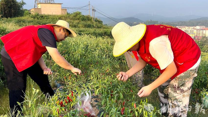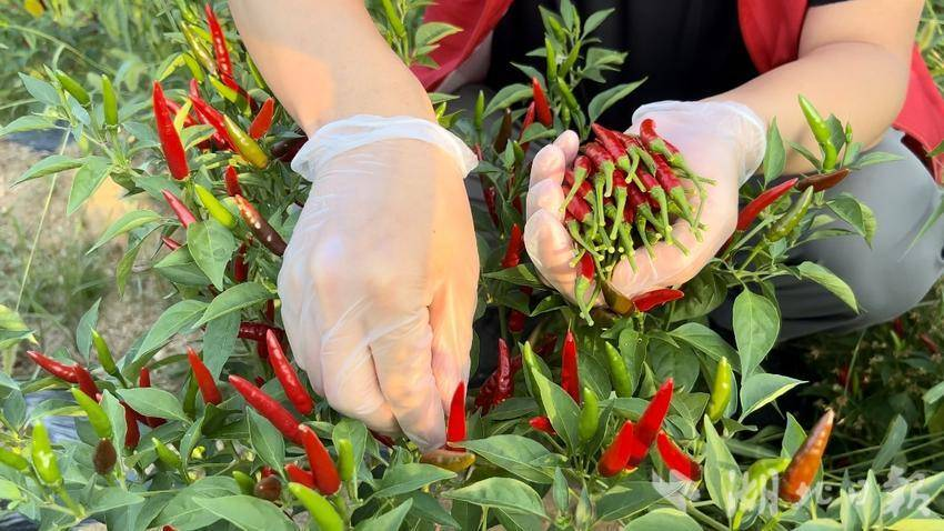 當天,志愿者們化身“采椒能手”,穿梭于紅綠交錯的田間,手不停歇地采摘成熟的辣椒,與農(nóng)戶一起投入到緊張而有序的工作中。經(jīng)過一天的努力,志愿者們共采摘辣椒超過1800斤,極大地加快了辣椒的采收進度。此外,志愿們還為農(nóng)戶送去了礦泉水、綠茶等防暑降溫物資,確保他們能夠及時補充水分,預防中暑。