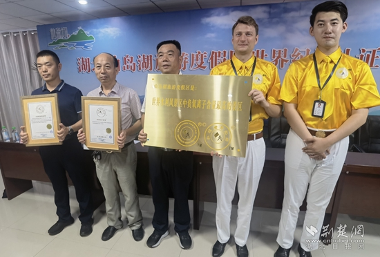 現(xiàn)場頒發(fā)“世界水利風景區(qū)中負氧離子含量最高的景區(qū)”紀錄證書該鎮(zhèn)新添一項世界級榮譽