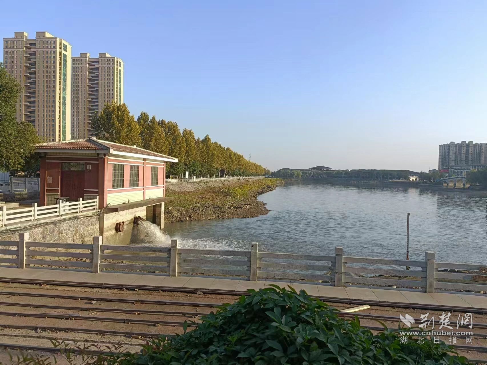 云夢縣水利和湖泊局副局長柳進(jìn)軍說,通過制定城區(qū)河道湖泊調(diào)水方案,在城區(qū)“一渠三河三湖”低于生態(tài)水位(生態(tài)流量)時及時進(jìn)行引水調(diào)水,保障城區(qū)“一渠三河三湖”生態(tài)水位(生態(tài)流量),加大河湖渠水環(huán)境容量和自凈能力。截至目前,已通過黃崗泵站、桂花潭泵站向城區(qū)主要河流湖泊調(diào)水1070萬立方米確保用水,改善了城區(qū)水生態(tài)、水環(huán)境,提升整體環(huán)境面貌。