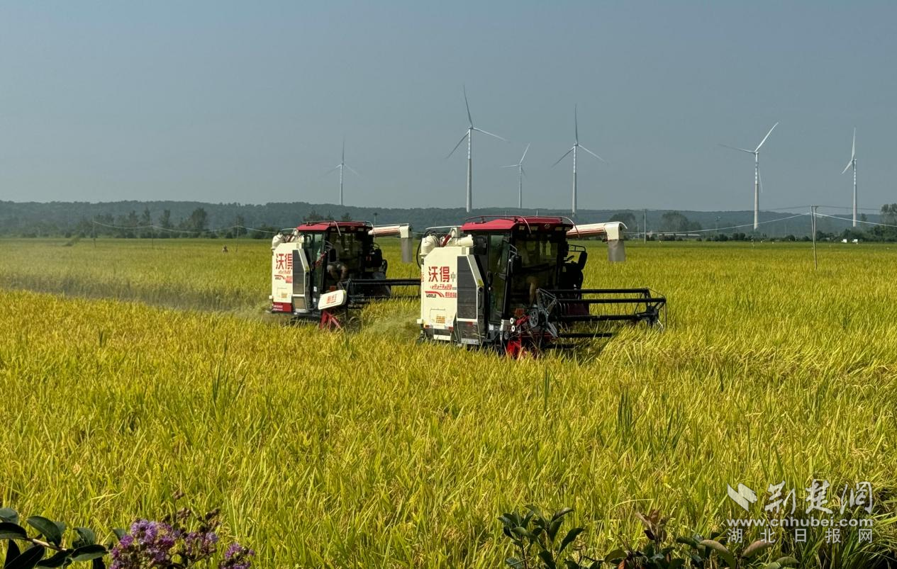 田店鎮(zhèn)暢馬村水稻收割接力賽。孫縉 攝