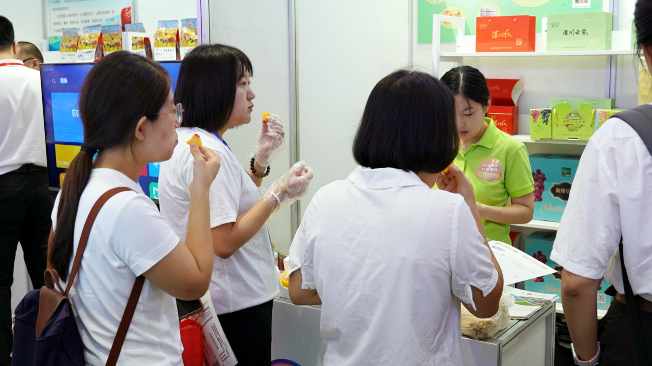 一次展會就是一個推廣平臺。除了高端葡萄外,孝昌黃桃也頻頻出圈,吸引眾人目光。展臺內(nèi),工作人員一邊忙著切黃桃,一邊熱情招呼客人品嘗。展臺外,一撥撥客人蜂擁而至,爭相品嘗,大家品嘗過后贊不絕口。