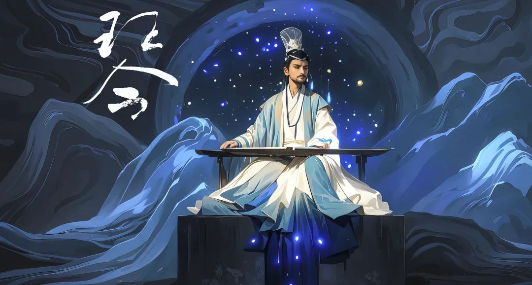 在“琴”境中,一位穿著白衣的男子輕拂古琴,