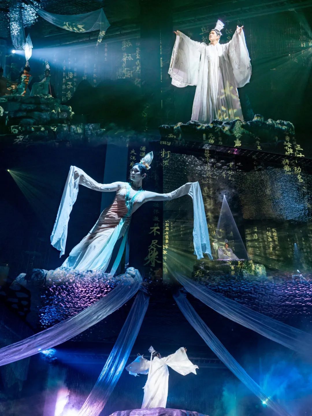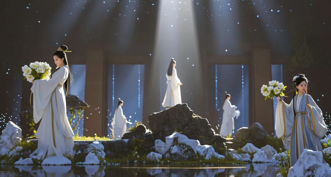 宋文化沉浸式奇幻賞《愛雅宋》立足于風(fēng)雅宋韻和AI動(dòng)機(jī),根據(jù)極具轉(zhuǎn)折度的特殊空間和動(dòng)線設(shè)計(jì),致力于傳統(tǒng)文化融入數(shù)字化創(chuàng)新,通過虛擬串接角色、AI古詩(shī)新創(chuàng)、全息投射、激光集成控制、機(jī)械裝置程序控制、長(zhǎng)連屏觸摸手感反饋、大畫幅精確數(shù)字化翻轉(zhuǎn)、全場(chǎng)景數(shù)字化聯(lián)動(dòng)等前沿技術(shù),依托全方位虛實(shí)相間的復(fù)合式多媒體配置、極度壓光與提光的沉浸式光影視效、富于時(shí)空折疊意境的舞美創(chuàng)意、情境演藝與機(jī)械裝置巧妙咬合等創(chuàng)意手段,充分發(fā)揮行進(jìn)式觀演體驗(yàn)、各場(chǎng)景既獨(dú)立又聯(lián)通的節(jié)奏變化和系統(tǒng)化控制等優(yōu)勢(shì),在有限的物理空間中將奇幻、唯美、意識(shí)流、大境界等全新體驗(yàn)帶給觀眾。