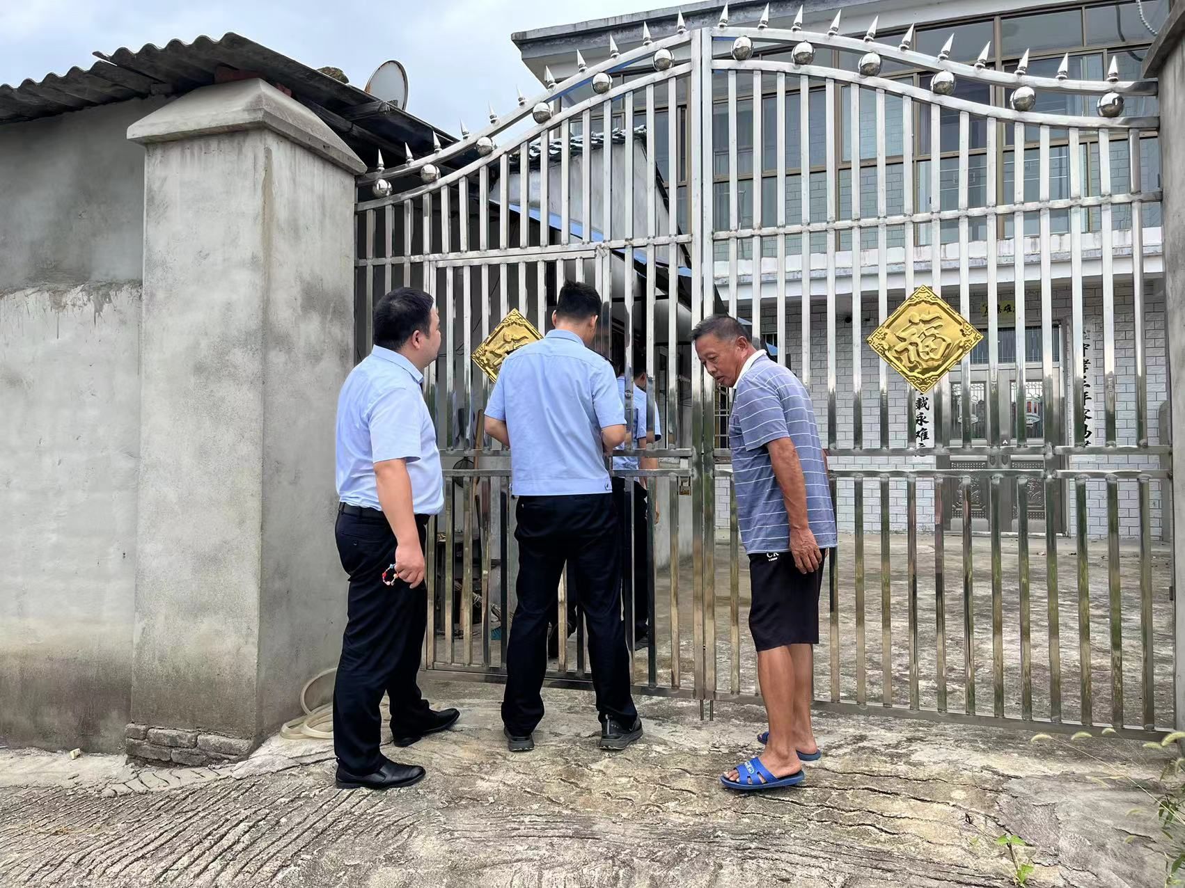 僅3分鐘,派出所兩位民警便趕到了李爺爺家所在地,因鐵門從里面反鎖的,民警便翻越圍墻跳到李爺爺家中,在另一名民警的配合下,打開了大門。