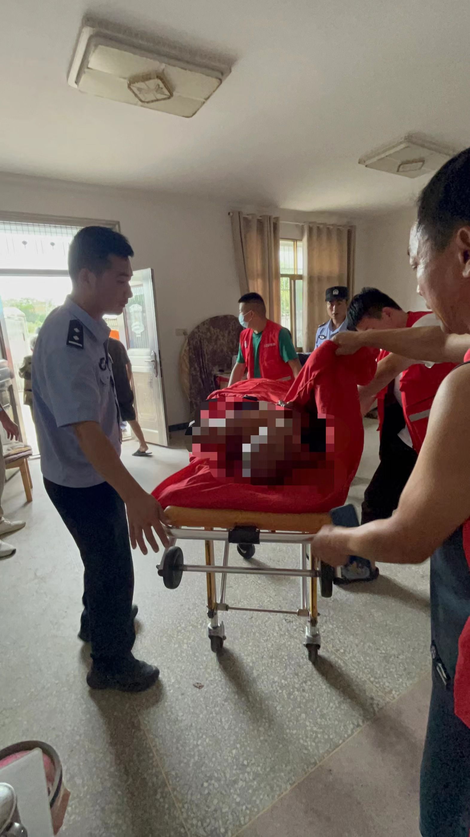 兩名民警到達(dá)房間后,發(fā)現(xiàn)李爺爺身體非常虛弱,于是便撥打了120急救電話。隨后,120急救車和病人親屬相繼到達(dá),湯小波立即和醫(yī)護(hù)人員一同將李爺爺抬上救護(hù)車,送往最近的醫(yī)院??粗顮敔敱粨尵龋瑴〔ㄟ@才安心地離開了現(xiàn)場。