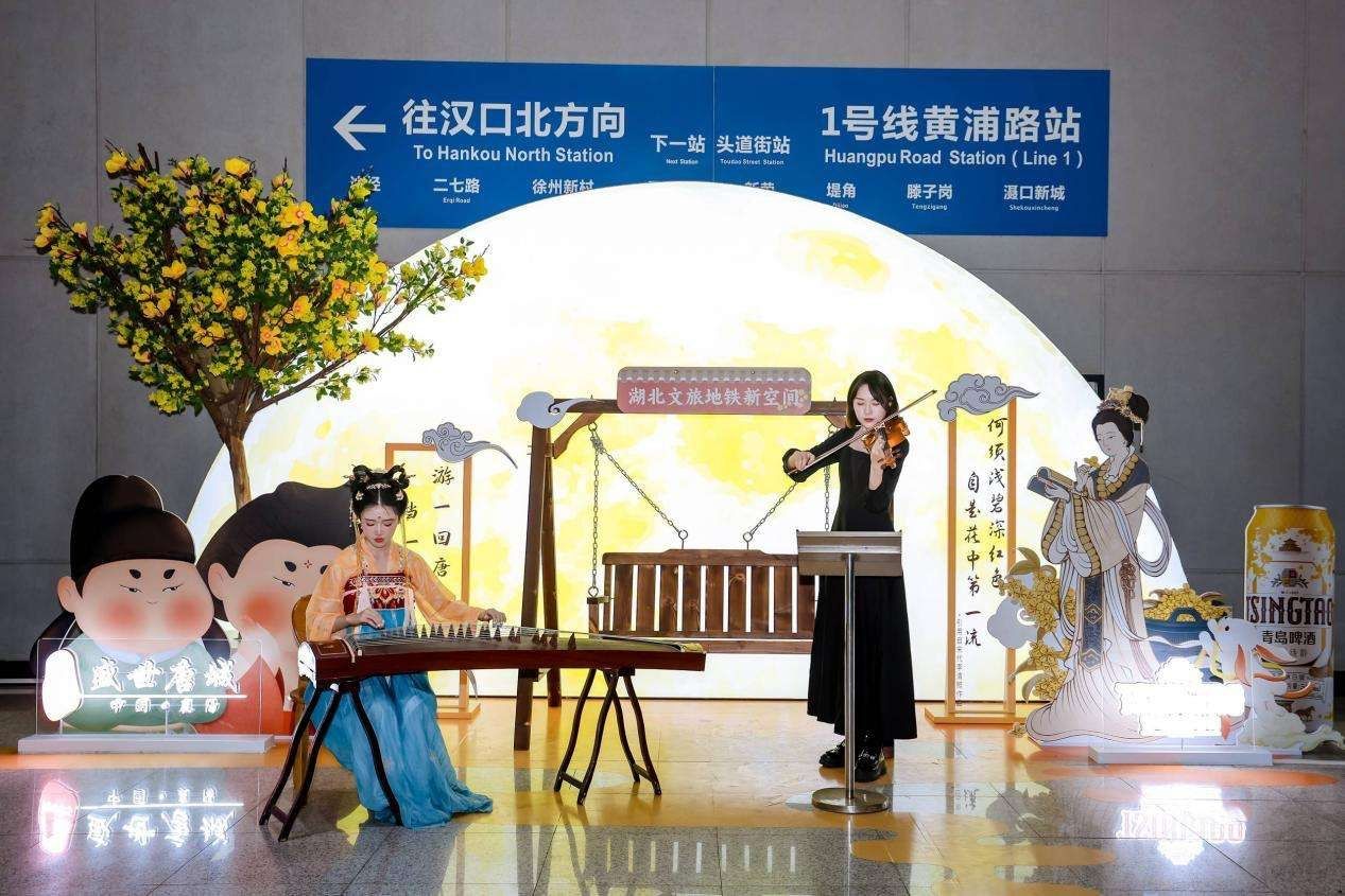 金秋九月,武漢地鐵站內(nèi)一場跨越千年的文化對話正在上演。悠揚的古箏音符與婉轉(zhuǎn)的小提琴旋律在空中交織,《月亮代表我的心》的樂聲回蕩在現(xiàn)代化的地鐵站內(nèi),為往來匆忙的乘客們帶來了一場沉浸式的地鐵“賞月”之旅,引得現(xiàn)場游客陣陣歡呼。