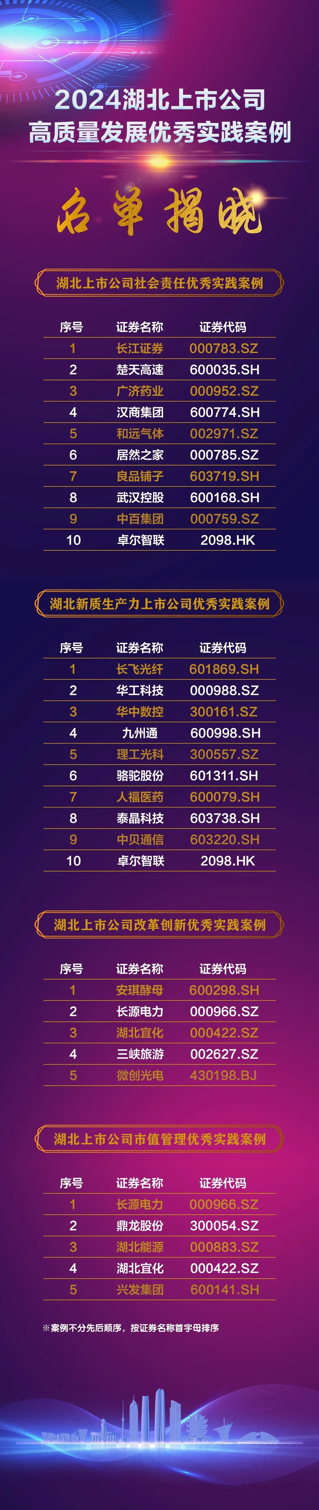 優(yōu)秀的企業(yè)總是自帶光芒。此次活動現(xiàn)場還發(fā)布了《2024湖北上市公司高質量發(fā)展優(yōu)秀實踐案例》,該案例由湖北日報編輯部、支點財經(jīng)/支點雜志編輯部聯(lián)合湖北省社會科學院、華中科技大學經(jīng)濟學院、武漢大學經(jīng)濟與管理學院、楚商智庫等智力支持單位,通過深度調(diào)研走訪、案例征集、模型搭建、數(shù)據(jù)分析、問卷調(diào)查等環(huán)節(jié),最終從社會責任、新質生產(chǎn)力、改革創(chuàng)新、市值管理四個方面,共選取30個2023年表現(xiàn)優(yōu)秀的湖北上市公司案例,詳細解讀優(yōu)秀背后的成功密碼與經(jīng)驗教訓,以期為更多企業(yè)提供參考借鑒。