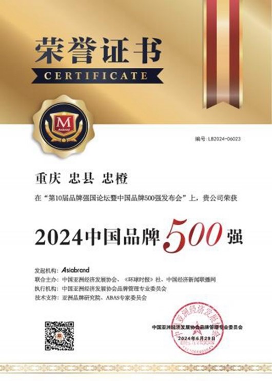 2024中國品牌500強(qiáng)。忠縣縣委宣傳部供圖 華龍網(wǎng)發(fā)