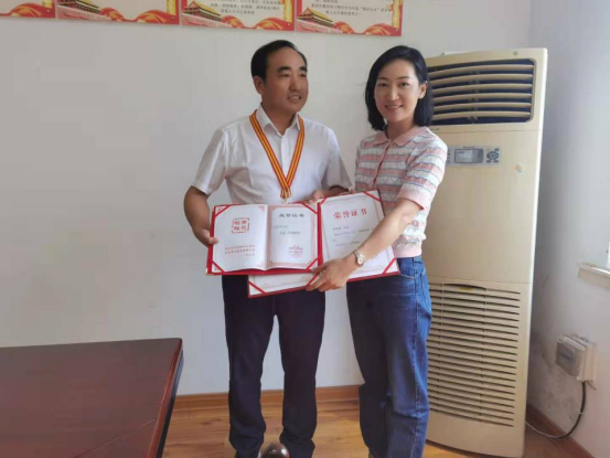 安陸市委常委、宣傳部長(zhǎng)王甜為身邊好人“荊楚楷?!编u寬橋頒發(fā)證書