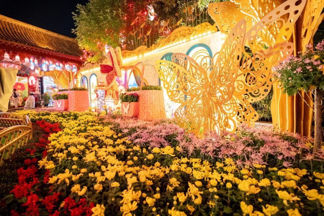 滿園燦爛耀眼的花燈齊齊點(diǎn)亮,