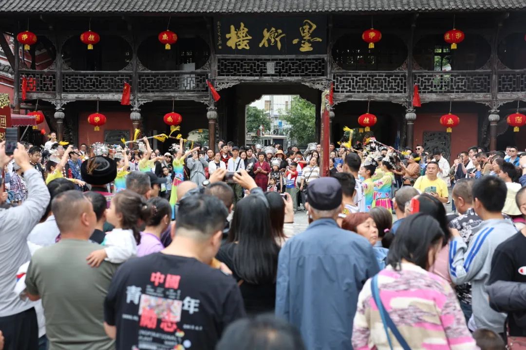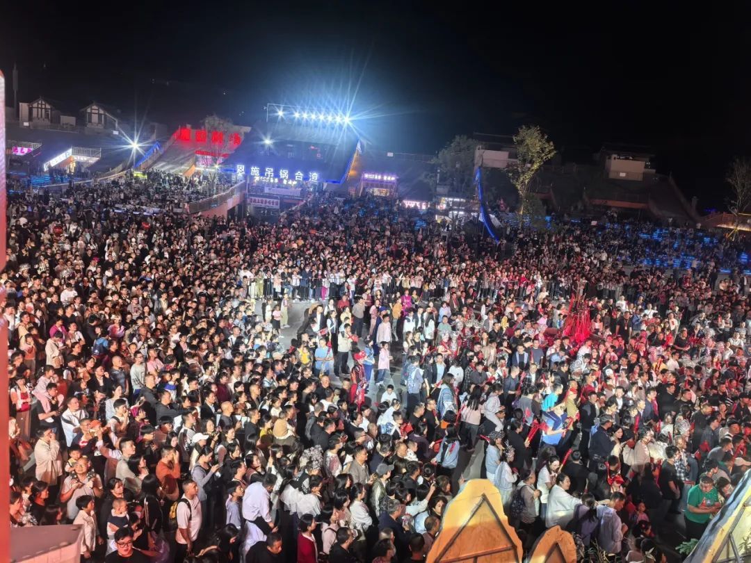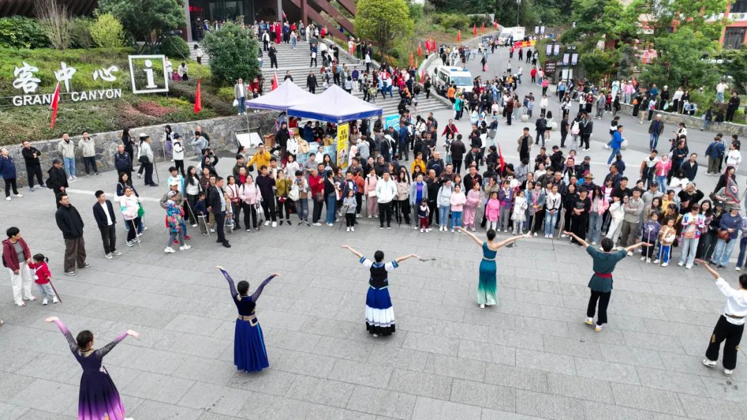恩施女兒城景區(qū)上演著“人從眾”模式。國慶專題街區(qū)快閃活動、“篝火晚會”“趕場相親女兒會”實景演出,來自五湖四海的游客共同感受恩施的熱情與豪邁。
