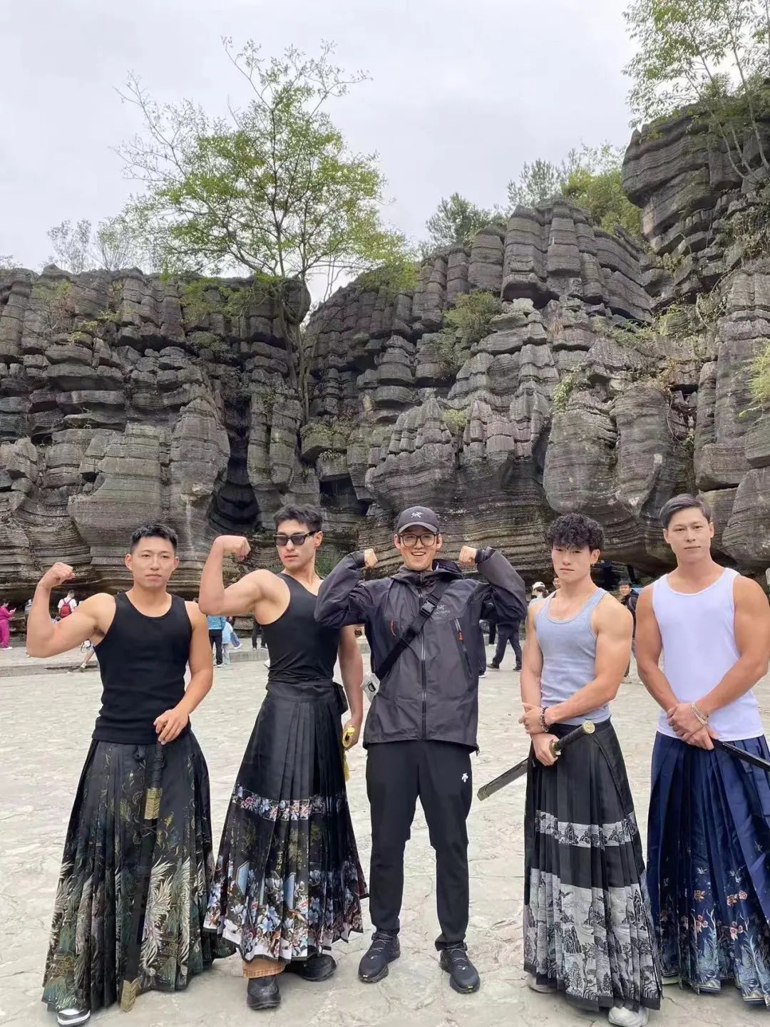 梭布埡石林景區(qū)上演真人秀,古風(fēng)甲胄、民族服裝、馬面裙在景區(qū)各景點進行互動拍照打卡,這個假期還迎來景區(qū)年度第 100 萬名入園幸運游客。