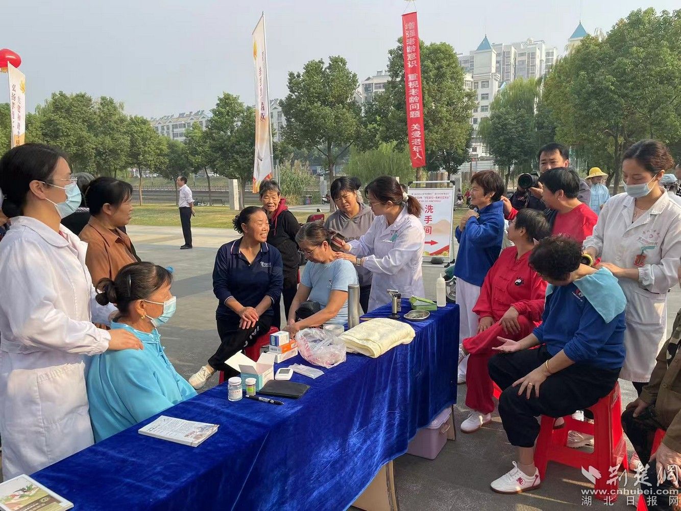 荊楚網(wǎng)(湖北日?qǐng)?bào)網(wǎng))訊(通訊員音卓)在第15個(gè)全國(guó)“敬老月”、第三屆中國(guó)關(guān)工委“孝老敬賢月”以及九九重陽(yáng)節(jié)來(lái)臨之際,10月10日,孝感市中醫(yī)醫(yī)院老年病科、治未病科、腦病科、心病科的醫(yī)護(hù)團(tuán)隊(duì),在孝南區(qū)禁毒主題公園精心組織了一場(chǎng)充滿(mǎn)溫情的義診活動(dòng)。