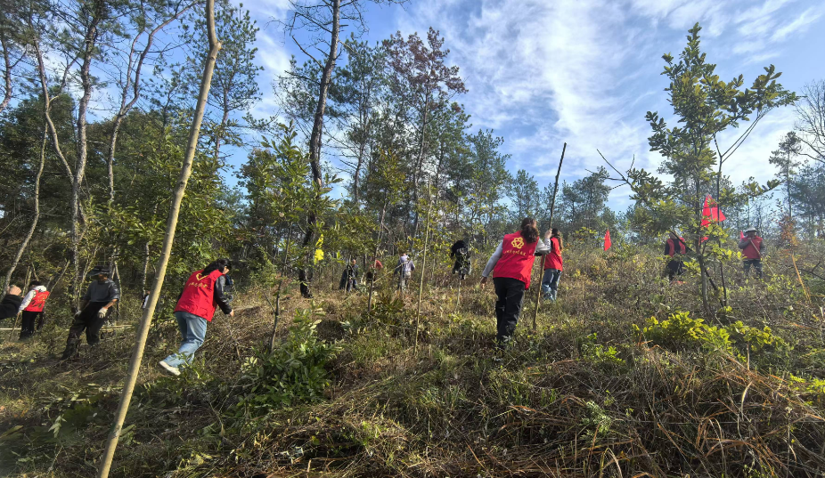 植樹現(xiàn)場一派熱火朝天,大家干勁十足,配合默契。在林業(yè)人員的專業(yè)指導(dǎo)下,大家分工協(xié)作,有的挖坑,有的扶苗,有的培土,到處都是忙碌的身影。大家不顧鞋褲上的泥土,一起揮鋤揚(yáng)鍬,把一棵棵樹苗穩(wěn)穩(wěn)地栽好,經(jīng)過一天的辛苦奮戰(zhàn),共栽種扁柏2000株,楓香4000株,四季青4000株。