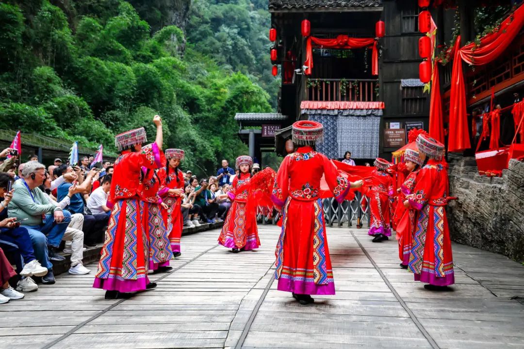 At the Chexi Folk Custom Tour Site, you have the opportunity to watch Tujia singing and dancing, along with original folk performances, experiencing the ancient customs of Ba and Chu.