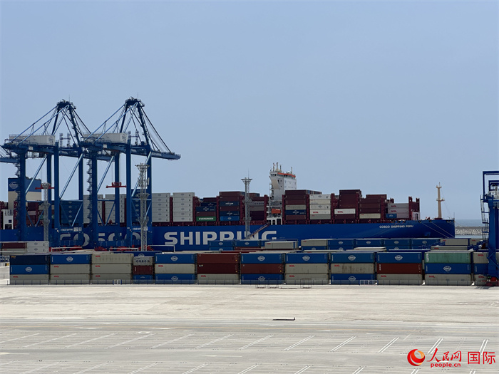 當(dāng)?shù)貢r間11月15日,秘魯錢凱港碼頭操作區(qū)現(xiàn)場。人民網(wǎng)記者 周雨攝