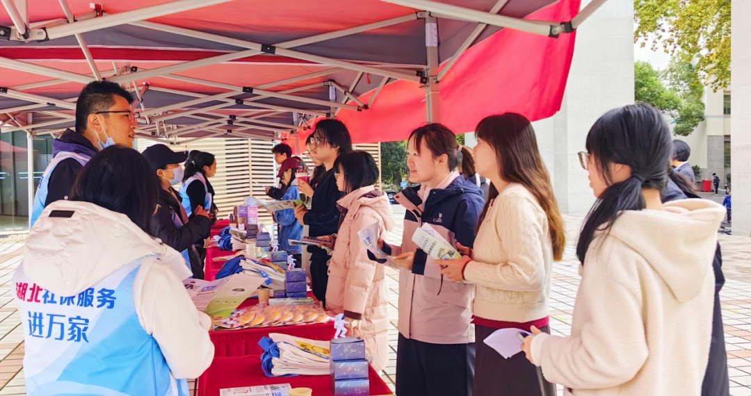 大學(xué)生們你一言我一語,熱切地咨詢著各自關(guān)心的社保問題,省社保中心工作人員耐心細致地逐一解答,現(xiàn)場氣氛十分融洽。此次“社保微課入校園”活動共吸引湖北大學(xué)300余名學(xué)生參加,現(xiàn)場發(fā)放各類社保宣傳產(chǎn)品600余份。