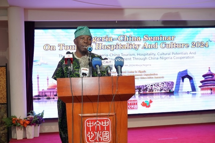 中國駐尼日利亞大使館文化參贊兼尼日利亞中國文化中心主任楊建興、尼日利亞聯(lián)邦藝術(shù)文化旅游和創(chuàng)意經(jīng)濟部代表奧加、尼眾議院女性事務(wù)代表吉姆巴等出席,中國旅游研究院國際研究所所長楊勁松視頻連線參會,阿布賈市旅行社、酒店業(yè)、高校師生等200余人參加。