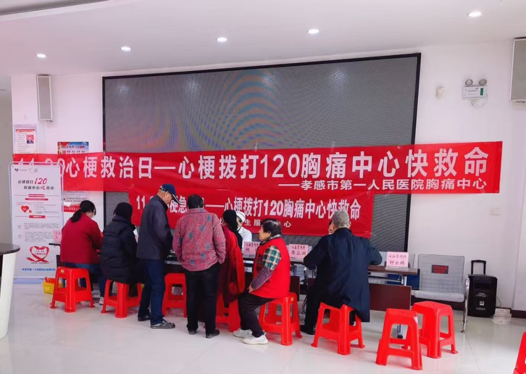 當天上午,孝感市第一人民醫(yī)院心血管內(nèi)科為主導(dǎo)的金心團隊走進沙溝社區(qū),開展“1120心梗救治日”義診宣教活動,通過多種方式向市民普及心梗的救治常識,倡導(dǎo)健康生活方式,提升廣大市民的急救意識。