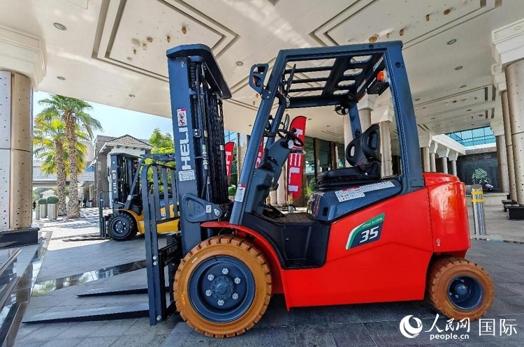 活動(dòng)現(xiàn)場(chǎng)展示的合力新能源叉車。人民網(wǎng)記者 管克江攝 |