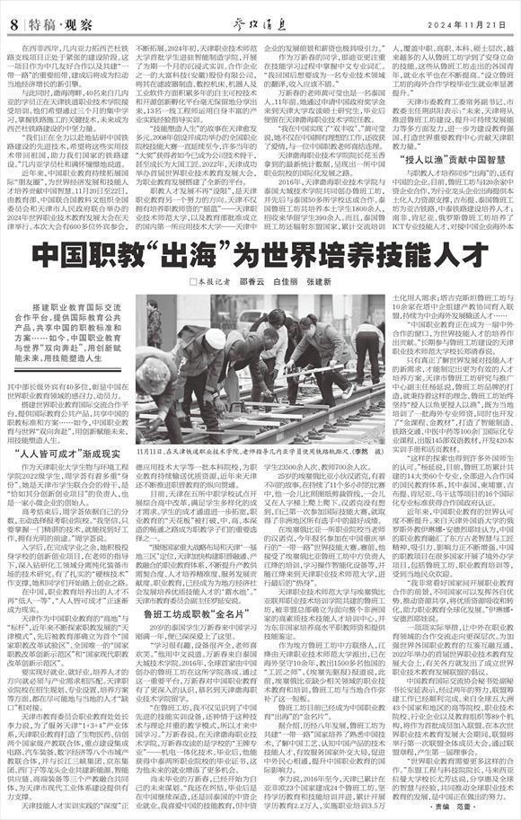 “技能塑造人生”的故事在天津愈發(fā)多元。2008年創(chuàng)設(shè)并成功舉辦的全國職業(yè)院校技能大賽一直延續(xù)至今,許多當(dāng)年的“大獎(jiǎng)”獲得者如今已成為公司技術(shù)骨干,甚至成長為大國工匠。2022年,天津成功舉辦首屆世界職業(yè)技術(shù)教育發(fā)展大會(huì),為職業(yè)教育發(fā)展搭建了全新的平臺(tái)。