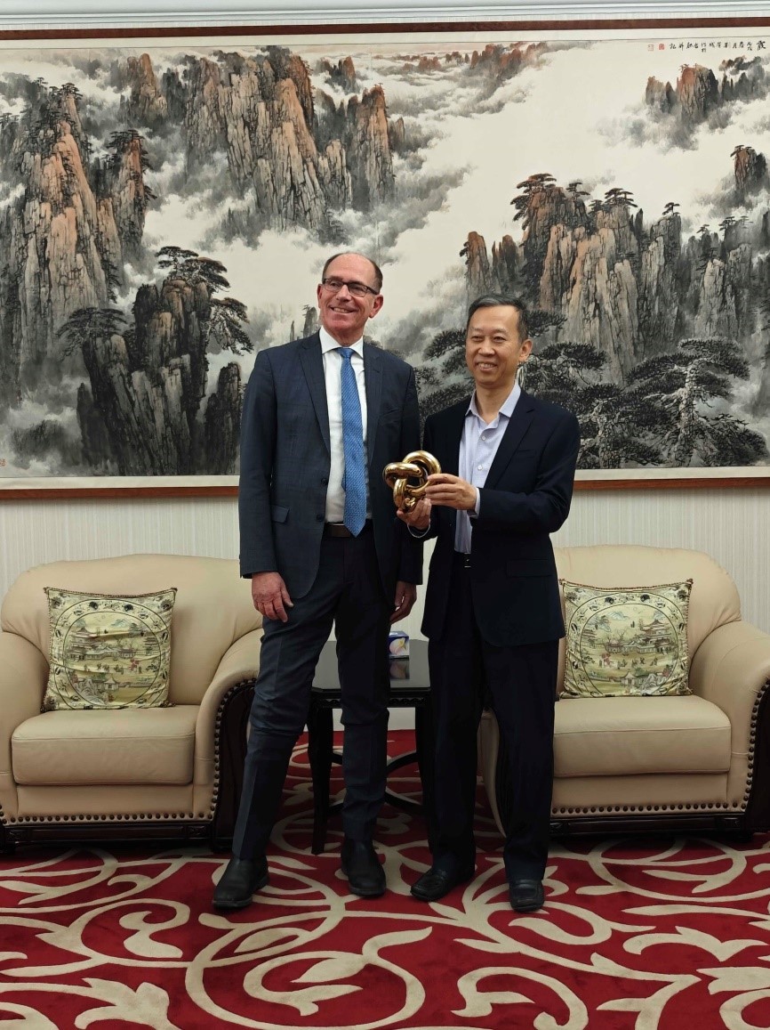 中國駐瑞典大使崔愛民會見瑞中貿(mào)易委員會主席佩爾松。中國駐瑞典大使館供圖