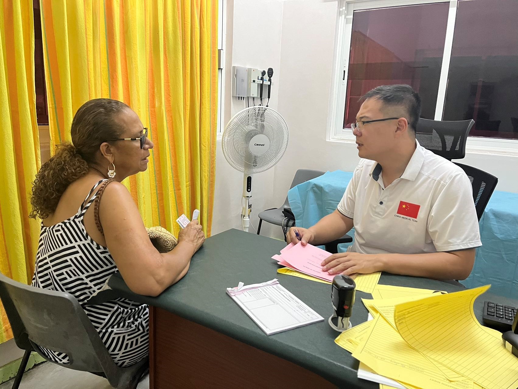 患者在就診。中國(guó)援塞舌爾醫(yī)療隊(duì)供圖