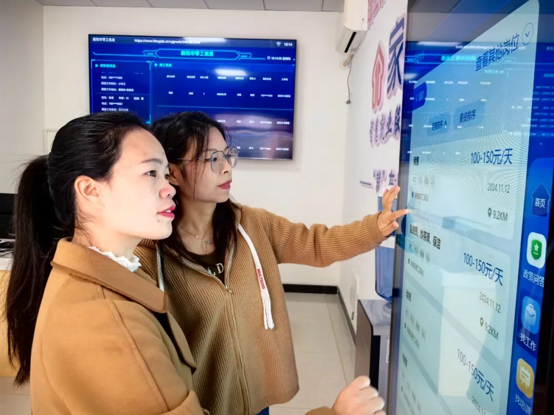 黃堡鎮(zhèn)居民在“家門口”智慧就業(yè)服務(wù)站查找工作崗位
