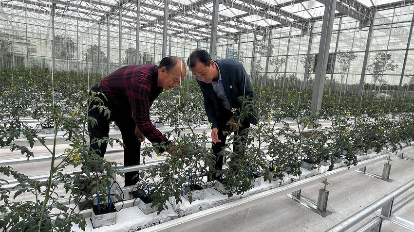 而在新建的玻璃溫室智能棚內(nèi),從山東壽光采購回來的5000多株番茄苗在無土栽培的條件下,僅半個月的時間便已進入開花期。“這些番茄苗全部采用荷蘭種植模式,安裝了水肥一體化設備,并運用了先進的物聯(lián)網(wǎng)技術,實現(xiàn)了全自動化調(diào)溫、調(diào)濕、通風、補光、施肥、滴灌?!睆纳綎|壽光特聘的技術員王延祥介紹,這批番茄苗有紅串、黃串及普羅旺斯三個品種,為了提高授粉率,公司還購買了3箱熊蜂進行授粉,一株一年可以結(jié)果20斤左右,60天后便可上市了。