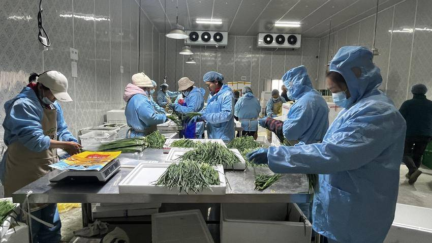 走進云臻智慧農(nóng)業(yè)科技有限公司的冷鏈分揀中心,恒溫13℃的生產(chǎn)車間里,近30名女性村民正在整理包裝西蘭花和韭菜,一旁的貨臺上整齊地堆放著冬瓜和娃娃菜?!斑@些蔬菜經(jīng)過嚴格的質(zhì)量檢測后,將通過冷鏈配送系統(tǒng)運往上海、南昌、武漢、長沙等地,確保為消費者提供安全、新鮮的食材?!鳖櫇缮蛴浾呓榻B。