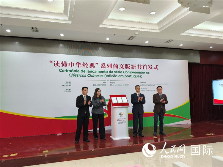 人民網(wǎng)北京11月28日電 (記者魯揚(yáng))“讀懂中華經(jīng)典”系列葡文版新書首發(fā)式27日在京舉行。中國外文局總編輯高岸明、外交部拉美司參贊張文偉、巴西駐華大使館文化處主管裴若涵、巴西漢學(xué)家沈友友以及來自社科院和多個(gè)高校的專家學(xué)者40余人出席了首發(fā)式。