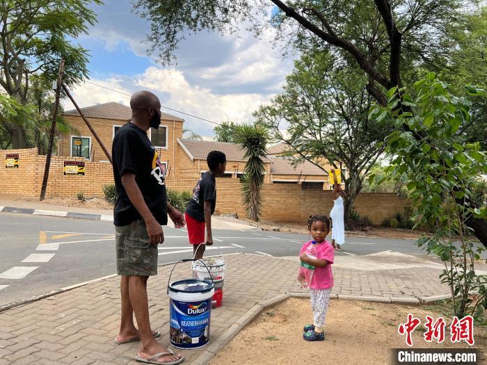 11月17日,南非約翰內斯堡居民在免費取水點取水。中新社記者 孫翔 攝