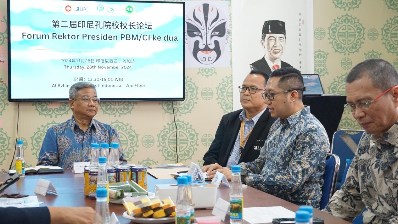論壇首項(xiàng)議程為各高校校長(zhǎng)分享各自孔院發(fā)展情況以及中文系在孔院的協(xié)助下快速發(fā)展的情況。阿拉扎大學(xué)校長(zhǎng)阿塞普首先介紹了該??鬃訉W(xué)院自成立以來(lái)在漢語(yǔ)教學(xué)、文化交流等方面取得的豐碩成果。隨后,各高校的校長(zhǎng)或代表分享了各自孔子學(xué)院的辦學(xué)歷史、特色課程設(shè)置、師資隊(duì)伍建設(shè)等方面的經(jīng)驗(yàn)。與會(huì)代表還深入探討了如何進(jìn)一步擴(kuò)大中文系規(guī)模,提升教學(xué)質(zhì)量,為印尼培養(yǎng)更多高素質(zhì)的中文人才等議題。