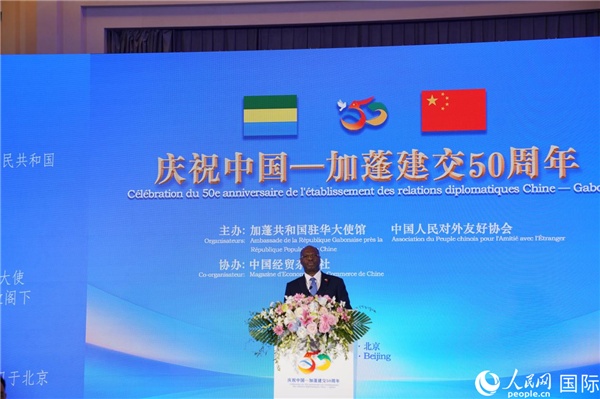 加蓬駐華大使恩東致辭。人民網(wǎng) 孫鴻宇攝