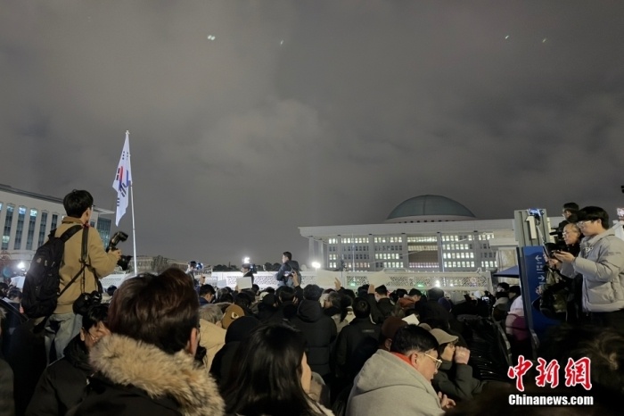 當(dāng)?shù)貢r(shí)間12月3日晚,韓國(guó)總統(tǒng)尹錫悅發(fā)布緊急戒嚴(yán)令。韓國(guó)國(guó)會(huì)4日凌晨召開(kāi)全體會(huì)議,通過(guò)決議要求解除緊急戒嚴(yán)令。圖為大批民眾聚集在韓國(guó)國(guó)會(huì)門(mén)口。中新社記者 劉旭 攝