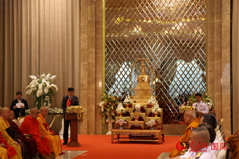 陳瑞峰代表中方致辭表示,中泰是親密友好鄰邦,“中泰一家親”歷久彌新。佛牙舍利是中國國寶和世界佛教信眾崇奉的圣物,相信佛牙舍利來泰供奉這一佛教盛事將進一步增進兩國佛教界傳統(tǒng)法誼,促進兩國人民民心相通。