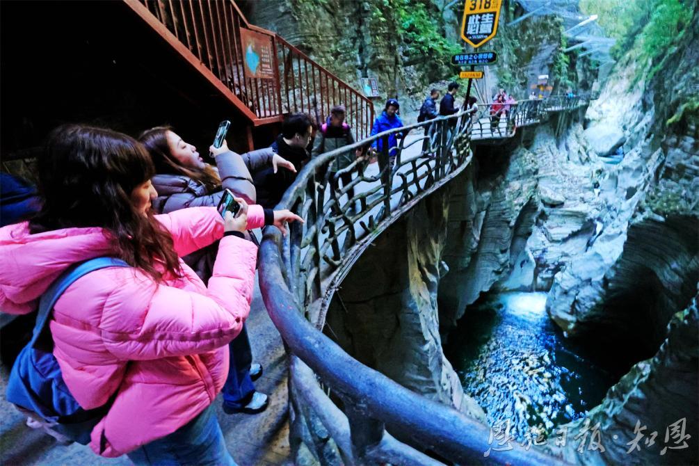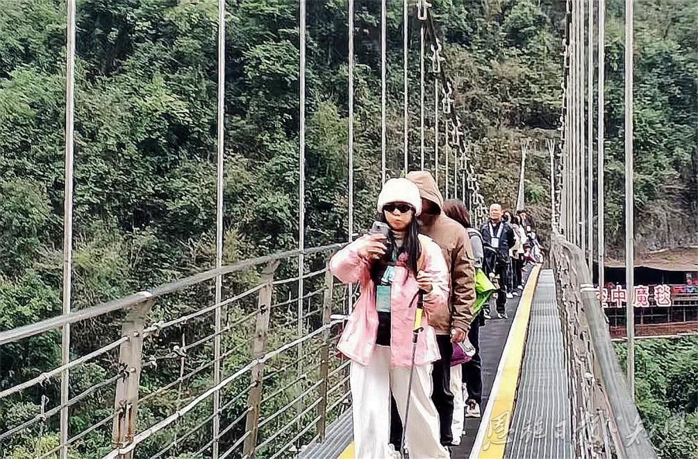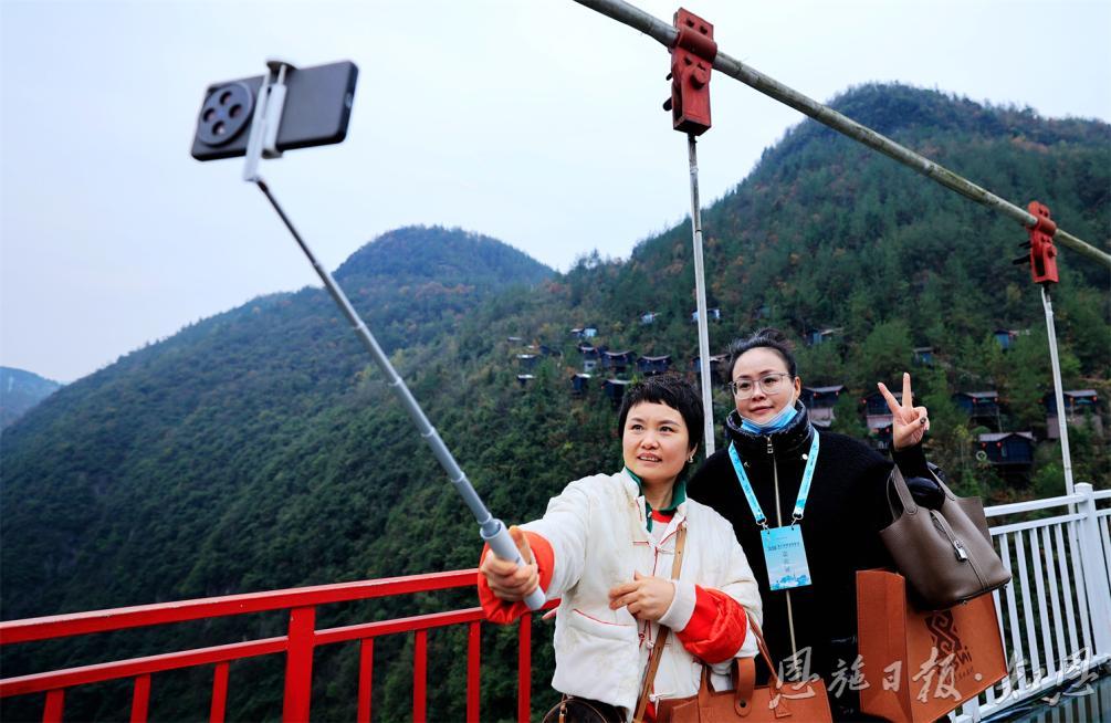 在恩施地心谷,參會(huì)人員親身體驗(yàn)到了自然的鬼斧神工。他們漫步在古老的棧道上,俯瞰著深邃的峽谷,感受著大自然的壯麗與神秘。溪水潺潺,鳥鳴山更幽,每一處景色都讓人心曠神怡。一位來自北京的旅行商分享道:“站在棧道上,我仿佛能感受到地球的心跳,那種震撼和敬畏之情難以言表,有了親身的體驗(yàn)我也能更好為游客介紹恩施地心谷景區(qū)了。”