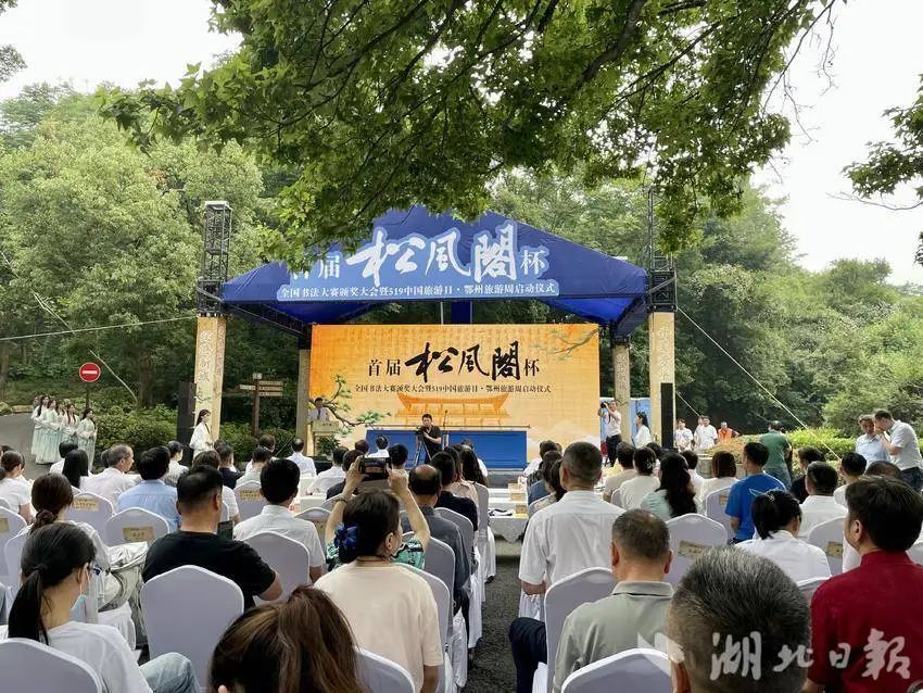 2024年5月19日,中國旅游日當(dāng)天,首屆“松風(fēng)閣”杯全國書法大賽頒獎大會在鄂州市西山風(fēng)景區(qū)隆重舉辦,省、市領(lǐng)導(dǎo)為獲獎代表頒獎。與此同時,現(xiàn)場邀請專家進(jìn)行了“跨越千年,對話黃庭堅——黃庭堅松風(fēng)閣書法的價值及對鄂州文化的塑造”對話。