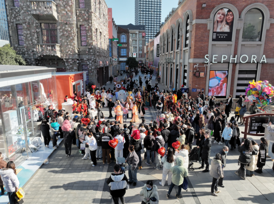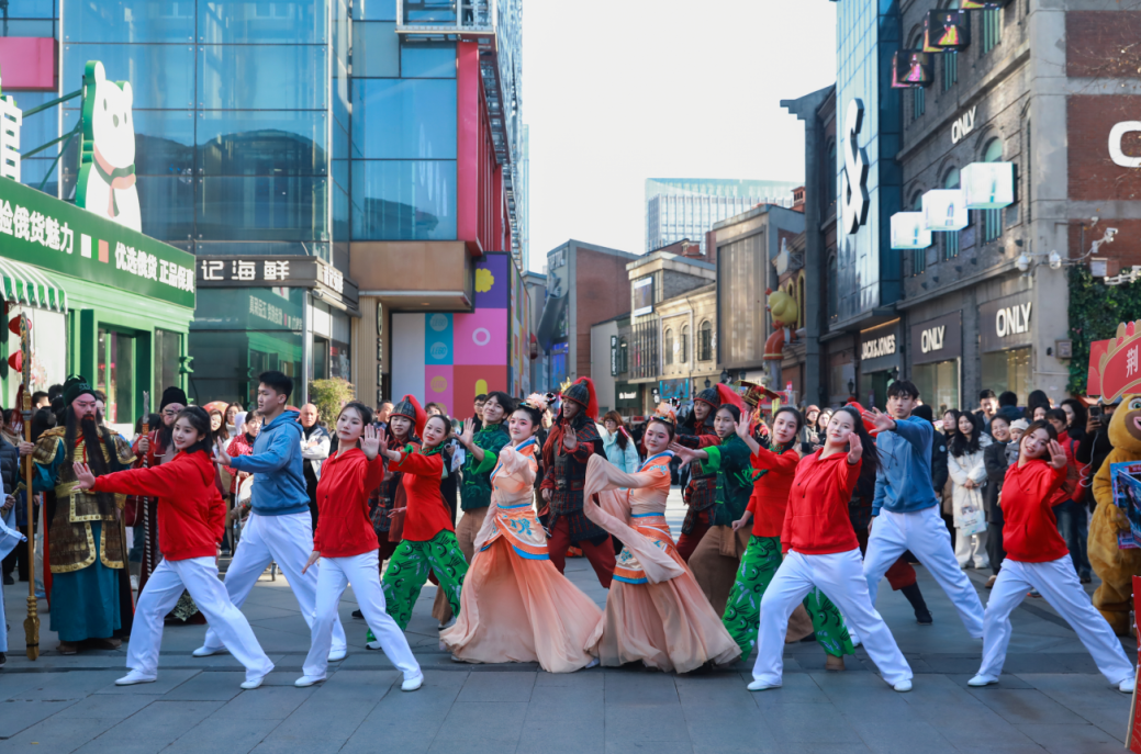 活動(dòng)沿楚河漢街、屈原廣場(chǎng)和萬(wàn)達(dá)廣場(chǎng)“一線兩區(qū)”同步展開。28日下午2點(diǎn),在楚河漢街屈原廣場(chǎng),極富荊州特色的古裝華服巡游開始,拉開了本次活動(dòng)的序幕??∧忻琅畟兩碇?guó)特色服飾、三國(guó)COS服飾以及民俗特色服飾,組成巡游方陣,劉關(guān)張、楚王、屈原等歷史人物紛紛登場(chǎng),瞬間點(diǎn)亮了整條楚河漢街商業(yè)區(qū),成為武漢最熱門的打卡點(diǎn)。