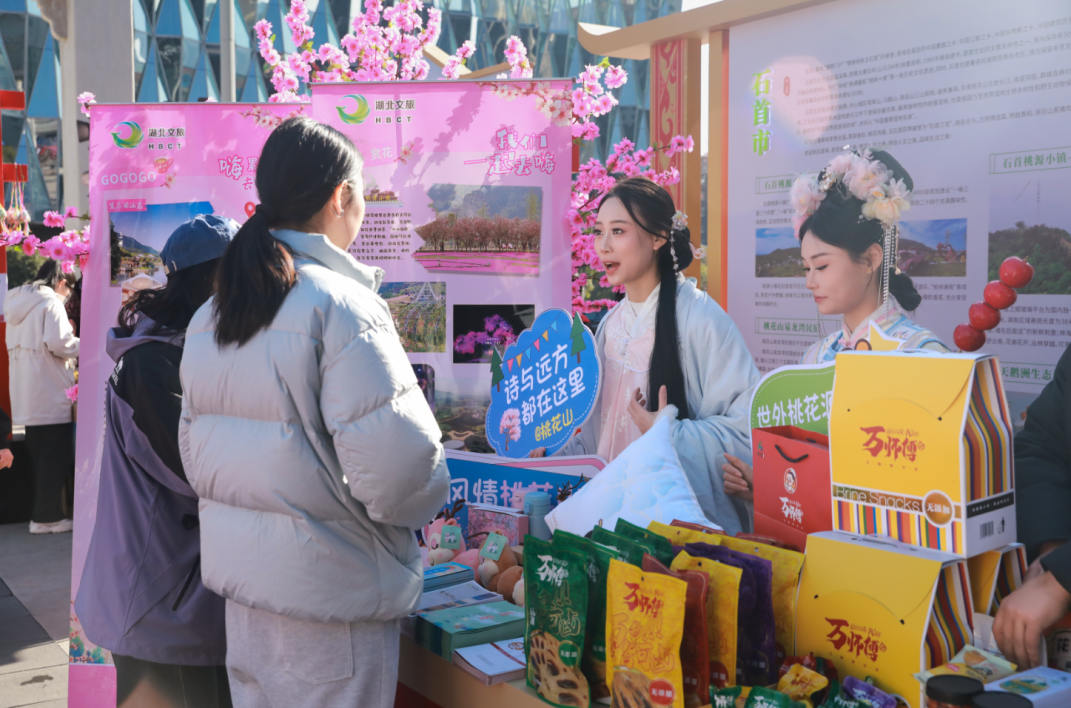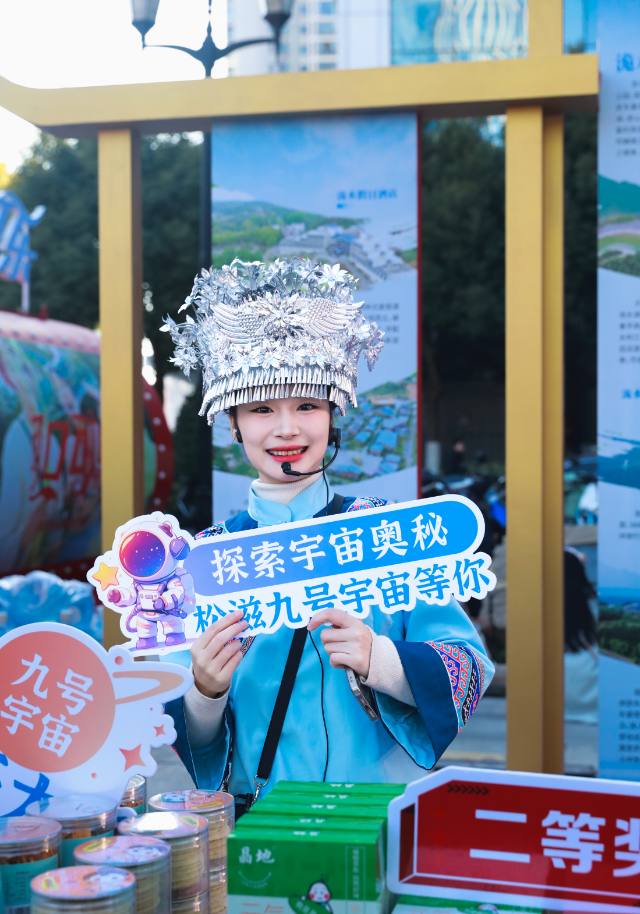 松滋文旅推介官景茜雅表示:“我們?yōu)榇蠹規(guī)?lái)了卸甲坪的特色禮品,洈水景區(qū)、九號(hào)宇宙館的門票,誠(chéng)邀武漢市民和游客們前往松滋,來(lái)一場(chǎng)放松身心、寄情山水的跨年之旅?!?/p>