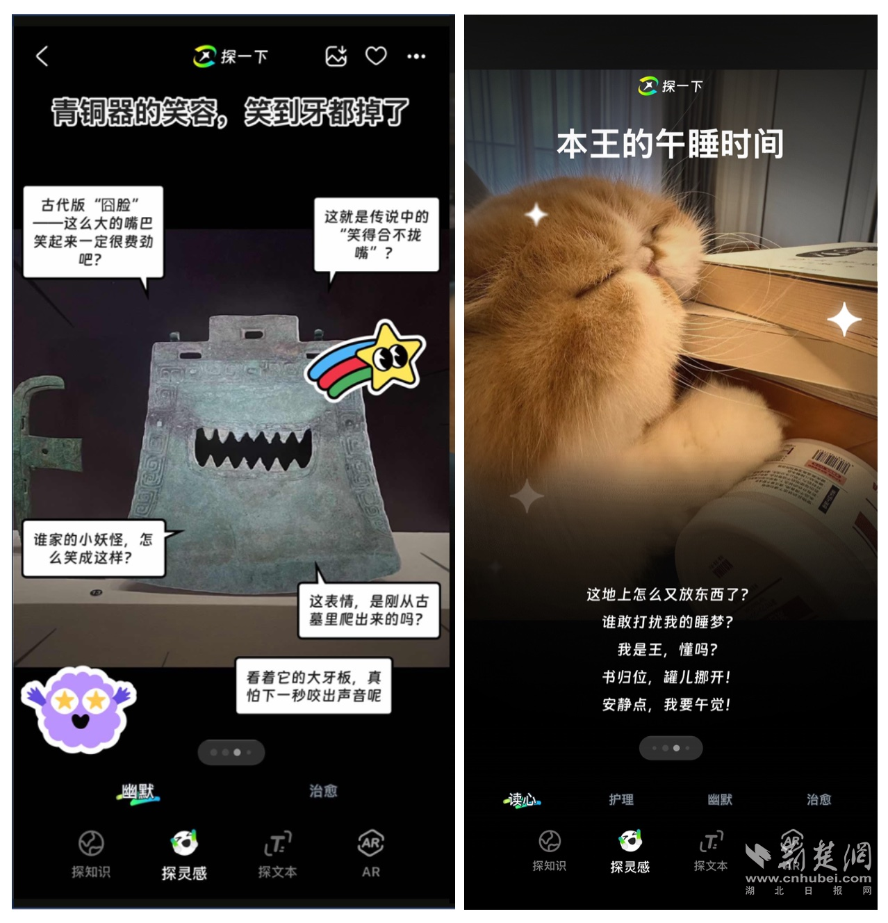不同于傳統(tǒng)的AI視覺搜索產(chǎn)品,“探一下”可通過AI識圖更快速地輸出有用信息,還能基于對用戶興趣和場景的深度理解,提供更趣味的視覺解讀及更多元的智能服務。